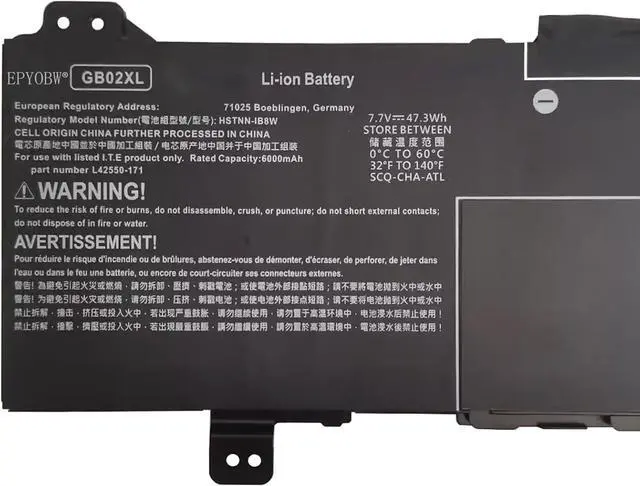 Replace Part Number GB02XL HSTNN-UB7M HSTNN-DB7X HSTNN-IB8W L42583-002 L42550-2C1 L42583-005
