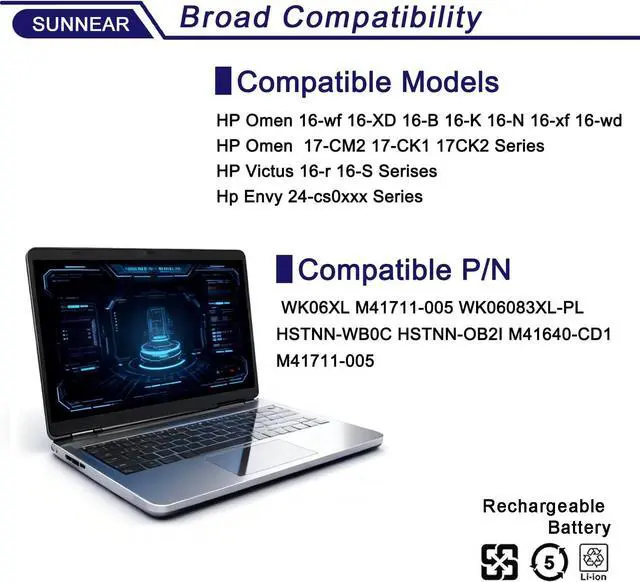 Compatible Part Number WK06XL M41711-005 WK06083XL-PL HSTNN-WB0C HSTNN-OB2I M41640-CD1, M41711-005 M41640-AC1