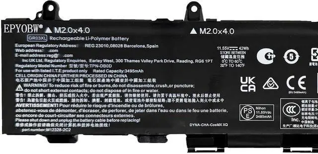Specifications Battery Model: GR03XL / Voltage: 11.55V / Capacity: 42Wh 3495mAh / Color: Black / Condition: Brand New.