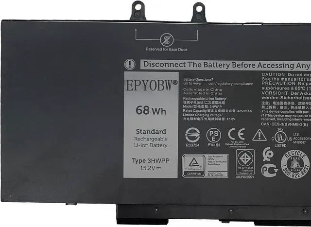SpecificationsBattery Model: 3HWPP / Voltage: 15.2V / Capacity: 68Wh 4-Cell / Color: Black / Condition: Brand New.