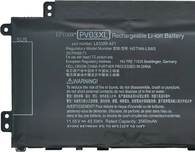 Replace Part Number PV03XL PP03XL HSTNN-LB8S HSTNN-DB9X HSTNN-OB1P M01144-005 M01148-421 L83388-421 L83388-AC1 L83393-005 PPO3XL PVO3XL 3ICP/5/68/73