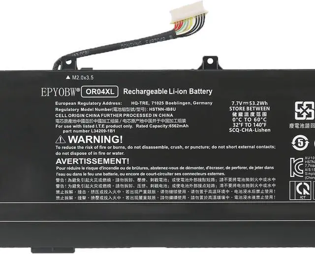 Replace Part Number OR04XL HSTNN-DB9C HSTNN-IB8U L34209-1B1 L34209-1C1 L34209-2B1 L34449-002 L34449-005 OR04053XL OR04053XL-PL