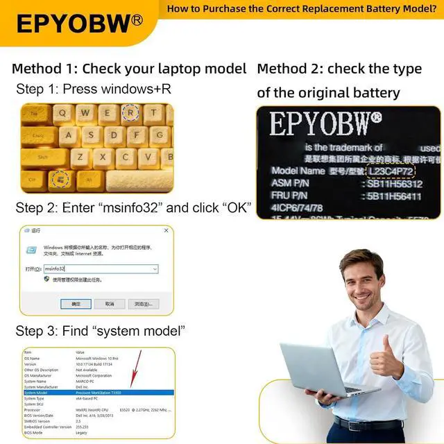 Purchase Skills Please open the back cover of the laptop before ordering and make sure that the original battery model is consistent with the listing. After getting the battery, please install the battery correctly, make sure that the battery connector is firmly connected to the laptop motherboard, and use the original charger to charge the laptop.Discharge the new battery to 5% (not 0%), then charge and cycle 3-4 times to wake up the new battery.