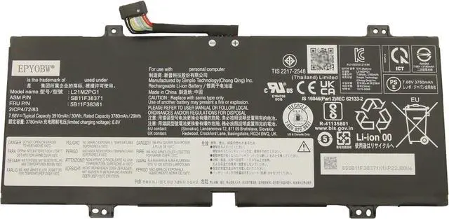 SpecificationsBattery Model: L21M2PG1 / Voltage: 7.68V / Capacity: 30Wh 3910mAh 2-cell / Color: Black / Condition: Brand New.