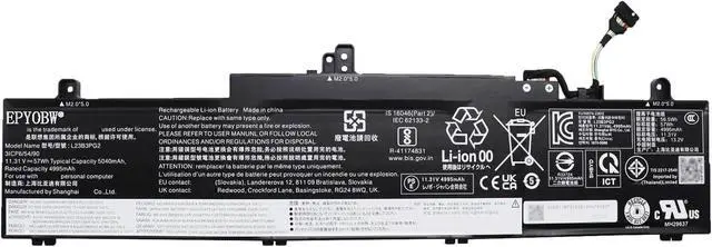 Compatible with Laptop Models For Lenovo ThinkPad E14 Gen 6 (Type 21M3, 21M4, 21M7, 21M8) Series; For Lenovo ThinkPad E16 Gen 2 (Type 21MA, 21MB, 21M5, 21M6) Series.( NOTE: There are two different types of batteries compatible here ( L22B3PG4 47Wh and L23B3PG2 57Wh), please open the back of the laptop to confirm your battery before ordering.)