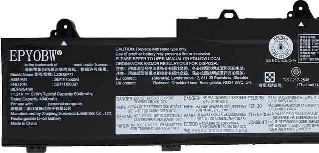 Compatible with Laptop ModelsFor Lenovo ThinkPad L14 Gen 5 (Type: 21L1, 21L2, 21L5, 21L6) Series; For Lenovo ThinkPad L16 Gen 1 (Type: 21L3, 21L4, 21L7, 21L8) Series.(Note: These laptops have both high and low capacity (L23D3P71 L23D3P72 L23M3P71 57Wh, L23M3P70 L23D3P70 L23B3P70 46.5Wh). You can open the back of the laptop to see the original battery model.)