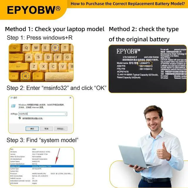 Purchase SkillsPlease open the back cover of the laptop before ordering and make sure that the original battery model is consistent with the listing. After getting the battery, please install the battery correctly, make sure that the battery connector is firmly connected to the laptop motherboard, and use the original charger to charge the laptop.Discharge the new battery to 5% (not 0%), then charge and cycle 3-95 times to wake up the new battery.