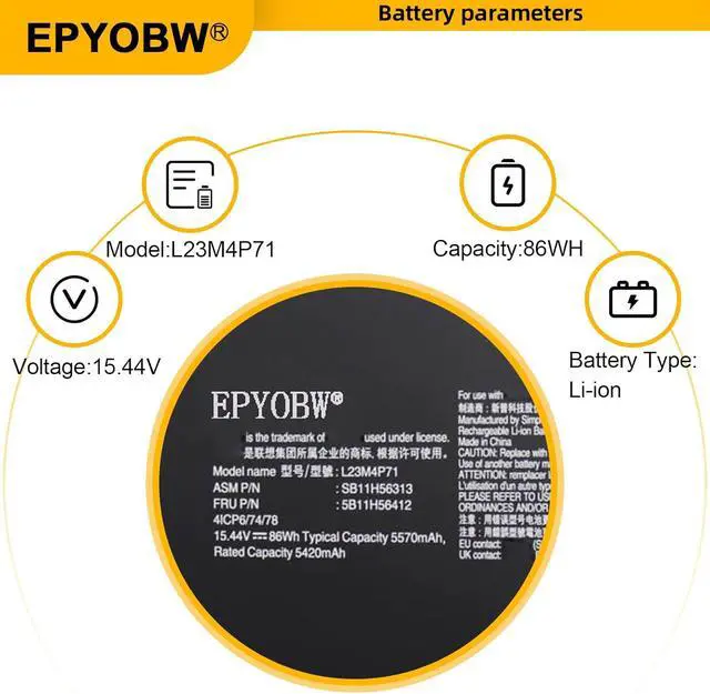 SpecificationsBattery Model: L23M4P71 / Voltage: 15.44V / Capacity: 86Wh 5570mAh 4-cell / Color: Black / Condition: Brand New.