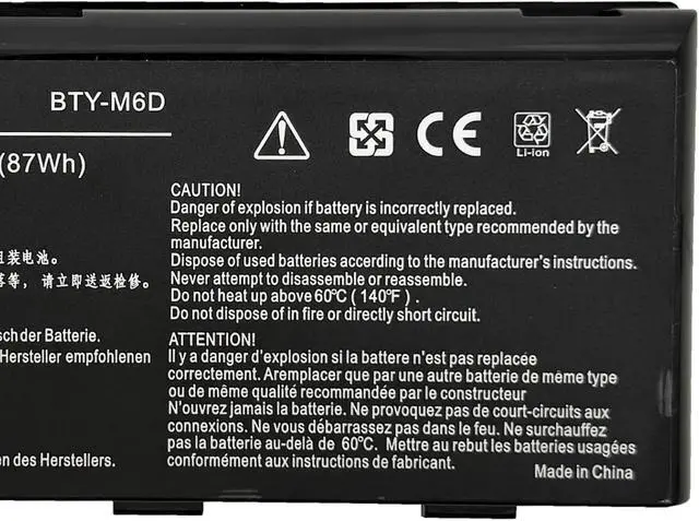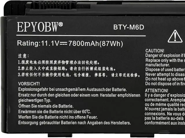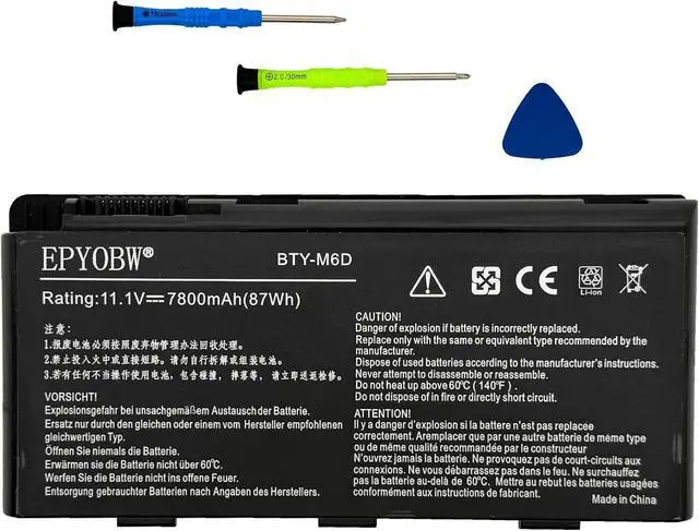 SpecificationsBattery Model: BTY-M6D / Voltage: 11.1V / Capacity: 87Wh 7800mAh 9-cell / Color: Black / Condition: Brand New.