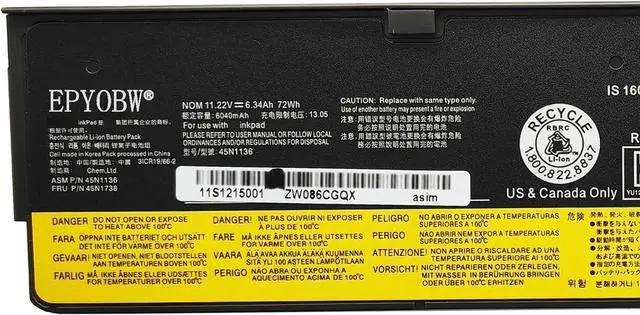 Specifications Battery Model: 45N1136 / Voltage: 11.22V / Capacity: 72Wh 6340mAh 6-Cells / Color: Black / Condition: Brand New.