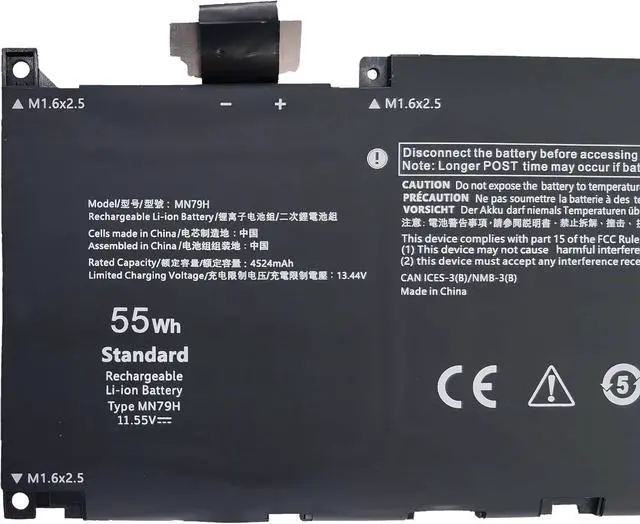 Battery Type: Li-ion; Voltage: 11.55V; Capacity: 55Wh / 3-Cell.