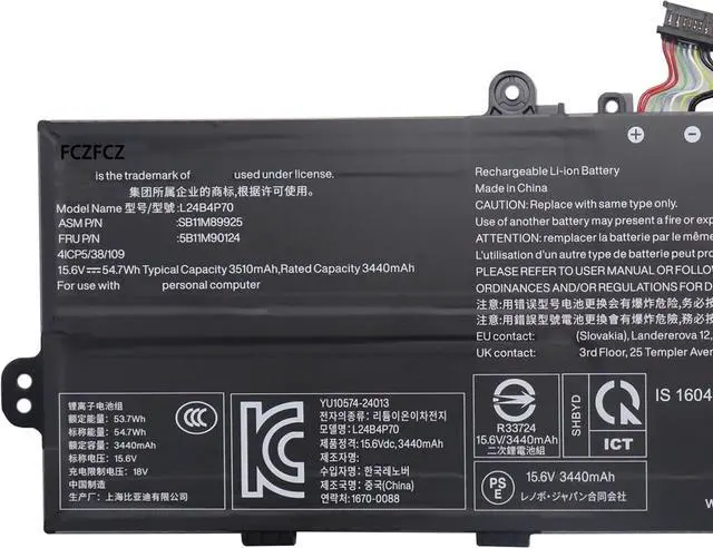 SpecificationsBattery Model:L24B4P70 // Voltage:15.6V // Capacity:54.7Wh 3510mAh 4-cell // Color:Black // Condition:Brand New.