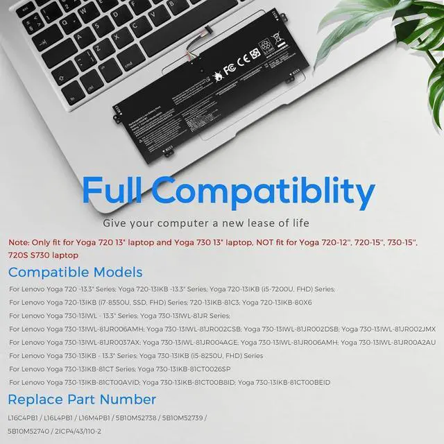 COMPATIBLE MODELS : For Yoga 720-13IKB 720-131KB 720-13IKB-81C3 720-13IKB-80X6, Yoga 730-13IKB 730-131KB 730-13IKB-81CT, Yoga 730-13IWL 730-131WL 730-13IWL-81JR Series .