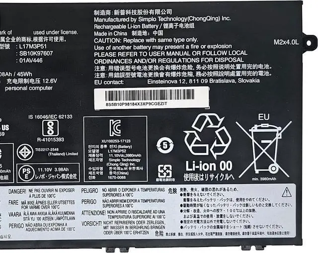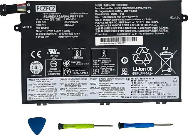 Replacement for Part NumberL17M3P51 SB10K97607 01AV446 SB10T83133 5B10W13890 L17C3P51 SB10K97609 01AV448 SB10T83131 5B10W13888 L17M3P52 SB10K97608 01AV447 SB10T83132 5B10W13889 L17L3P51 SB10K79606 01AV445 SB10T83130 5B10W13887 (NOTE: Please kindly open your laptop back cover to confirm your original battery model is the same as listed here. Thanks!)