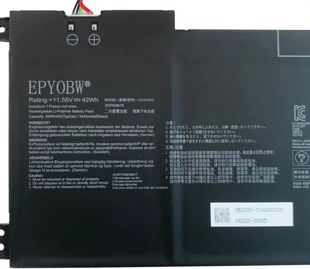SpecificationsBattery Model:C31N1912 / Voltage:11.55V / Capacity:42Wh 3640mAh 3-Cells / Color:Black / Condition:Brand New