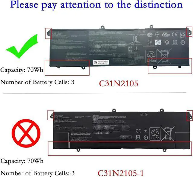 C31N2105 and C31N2105-1 batteries have slightly different appearances.