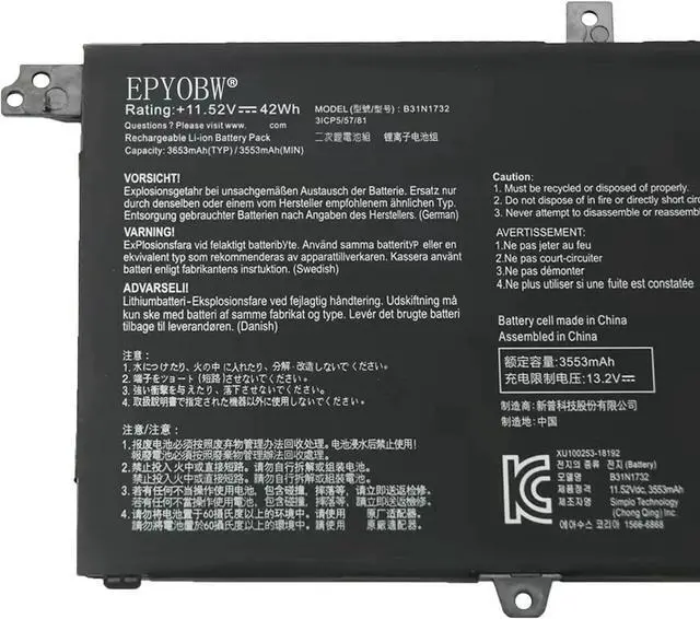 EPYOBW Promise All EPYOBW's batteries are certificated by UL/CE/FCC/RoHS. Our batteries are tested by strict quality control standards to ensure that the capacity is true, stable current, low self-discharge.And we also have short circuit, overheat, and overload protections. We are confident in the performance of replacement batteries and professional service.