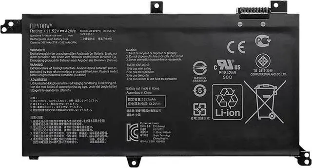 Specifications Battery Model: B31N1732 / Voltage: 11.52V / Capacity: 42Wh 3653mAh / Color: Black / Condition: Brand New.