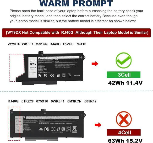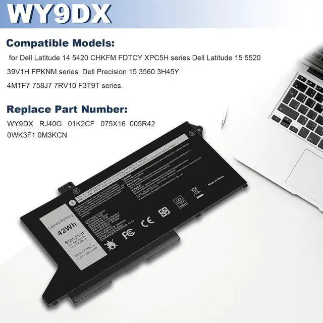 Compatible with Laptop Models: Replacement for Dell Latitude 14 5420 Series: Dell Latitude 14 5420 CHKFM; Dell Latitude 14 5420 FDTCY; Dell Latitude 14 5420 XPC5H; Replacement for Dell Latitude 15 5520 Series: Dell Latitude 15 5520 39V1H; Dell Latitude 15 5520 FPKNM; Replacement for Dell Precision 15 3560 Series: Dell Precision 15 3560 3H45Y; Dell Precision 15 3560 4MTF7; Dell Precision 15 3560 758J7; Dell Precision 15 3560 7RV10; Dell Precision 15 3560 F3T9T; Replacement for Dell P137G P137G001, Dell P104F P104F001 P104F002 Series