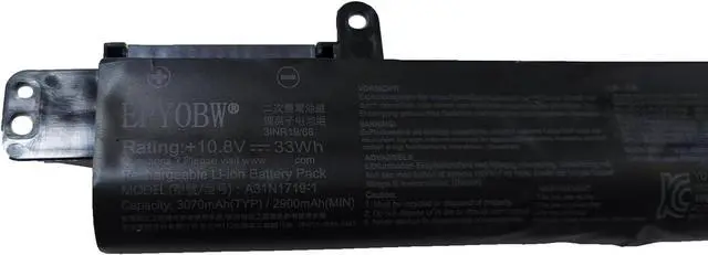 SpecificationsBattery Model: A31N1719-1 / Voltage: 10.8V / Capacity: 33Wh 3070mAh / Color: Black / Condition: Brand New.