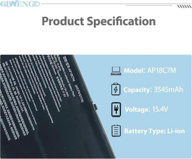 Specifications Model:AP18C7M Capatity: 55.9Wh Voltage:15.4V Color: Black Battery type: Rechargeable Li-ion Battery Condition: 100% brand New from Manufacturer.