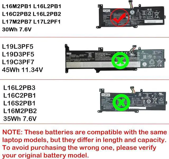 Compatible with Machine Modelsfor Lenovo IdeaPad V15-IKB (Type: 81YD) Series; for Lenovo IdeaPad V15-IWL (Type: 81YE) Series; for Lenovo IdeaPad V145-14AST (Type: 81MS) Series; for Lenovo IdeaPad V145-15AST (Type: 81MT) Series; (NOTE: These laptops are compatible with two battery capacities (30Wh and 35Wh). To avoid purchasing the wrong battery, please open your laptop's back cover and verify the original battery and its capacity.)
