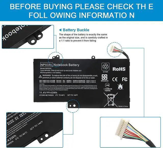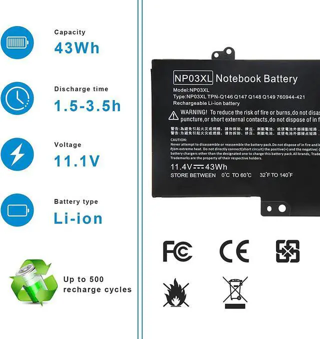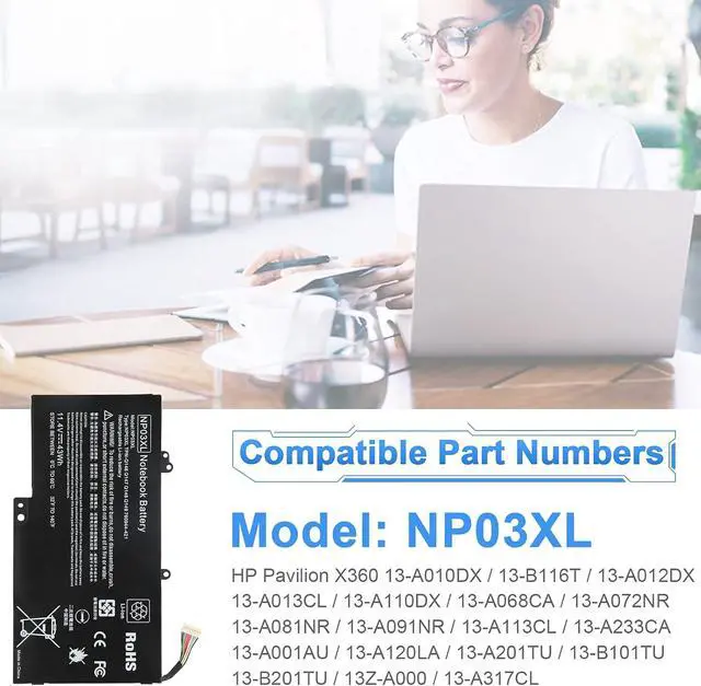 COMPATIBLE P/N : NP03XL HSTNN-LB6 G6T84UA G6T84UA#ABA TPN-Q146 TPN-Q147 TPN-Q148 TPN-Q149 760944-421 760944-421-18 761230-005 760944-541 HSTNN-UB6L J8C75PA