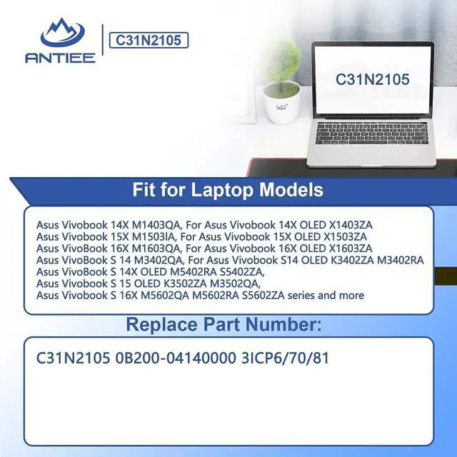 Compatible Laptop ModelsFit For Asus Vivobook 14X M1403QA, For Asus Vivobook 14X OLED X1403ZA, For Asus Vivobook 15X M1503IA, For Asus Vivobook 15X OLED X1503ZA, For Asus VivoBook 16X M1603QA, For Asus Vivobook 16X OLED X1603ZA, For Asus VivoBook S 14 M3402QA, For Asus VivoBook S 14X OLED M5402RA S5402ZA, For Asus Vivobook S14 OLED K3402ZA M3402RA, For Asus Vivobook S 15 OLED K3502ZA M3502QA, For Asus Vivobook S 16X M5602QA M5602RA S5602ZA Series Notebook.