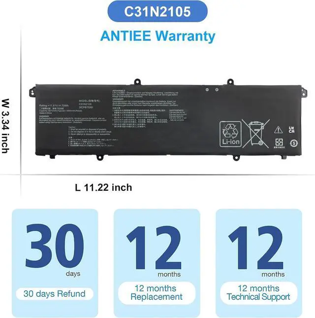 Replace Part NumberFit for C31N2105 0B200-04140000 3ICP6/70/81 (NOT compatible with C31N2105-1).