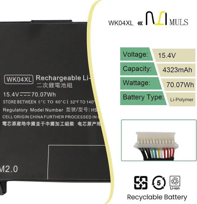 Compatible with Part NumberFit for WK04XL WK04070XL HSTNN-IB9V HSTNN-OB2C HSTNN-WB0B M38822-1D1 M38822-AC1 M38822-CE1 M38822-171 M39179-005.