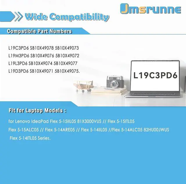 L19C3PD6 battery Compatible laptop Models Fit for Lenovo IdeaPad Flex 5-15IIL05 81X3000VUS // Flex 5-15ITL05 // Flex 5-15ALC05 // Flex 5-14ARE05 // Flex 5-14IIL05 //Flex 5-14ALC05 82HU00JWUS // Flex 5-14ITL05 Series.