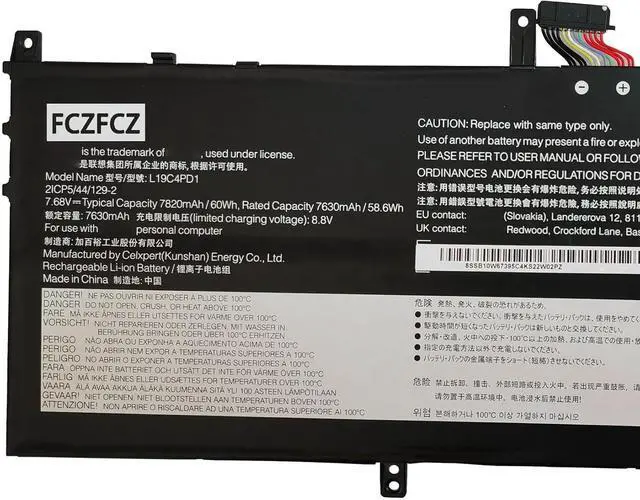 SpecificationsBattery Model:L19C4PD1 // Voltage:7.68V // Capacity:60Wh 7820mAh 4-Cells // Color:Black // Condition:Brand New.