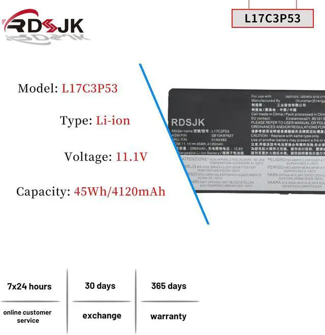 Replace Part Numbers: L17C3P53 SB10K97627 01AV483 L17L3P53 SB10K97625 01AV481 L17M3P55 SB10K97626 01AV482 5B10W13891 5B10W13892 5B10W13893 SB10T83136 3ICP6/54/90