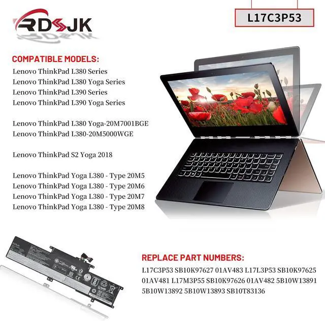 Compatible Models: Fit for Lenovo ThinkPad L380; ThinkPad L380 Yoga; ThinkPad L390; ThinkPad L390 Yoga Series; Fit for Lenovo ThinkPad S2 Yoga 2018; Fit for Lenovo ThinkPad L380 Yoga-20M7001BGE, Fit for Lenovo ThinkPad L380-20M5000WGE; Fit for Lenovo ThinkPad Yoga L380 - Type 20M5 20M6 20M7 20M8 Series