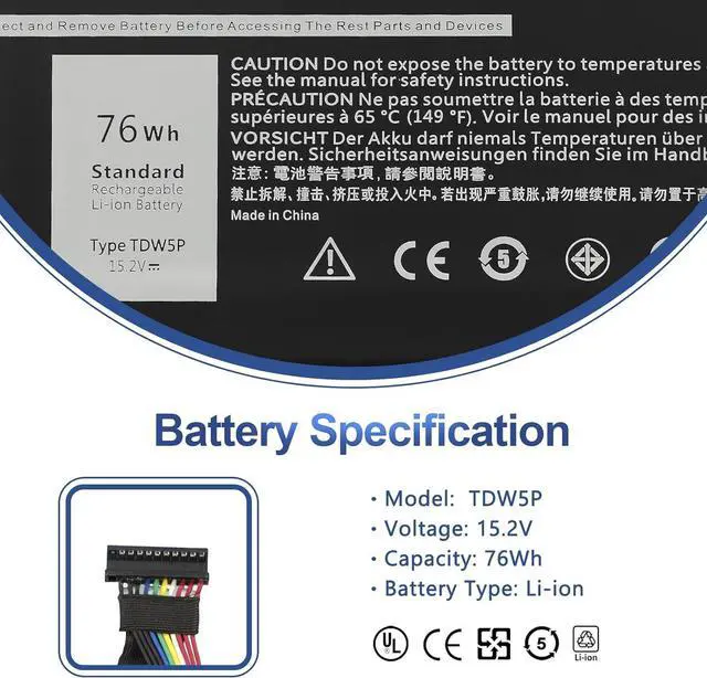 SpecificationVoltage: 15.2V. Capacity: 76Wh 4840mAh 4-Cells. Battery Type: Li-Polymer. Condition: Brand new, from high quality materials, top circuit boards and smart chip.