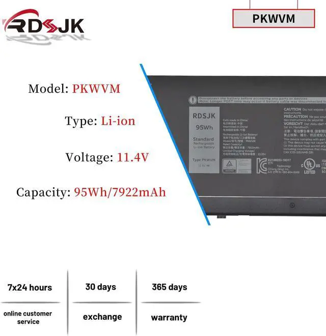 Battery type: Li-ion; Voltage: 11.4V; Capacity: 95Wh/7922mAh; Cells: 6-cell