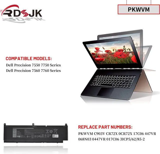 Compatible Models: Fit for Dell Precision 7550 7750 Mobile Workstation Series, Fit for Dell Precision 7560 7760 Mobile Workstation Series, Fit for Dell P44E P44E001 P44E002 P93F P93F001 P93F002 Series