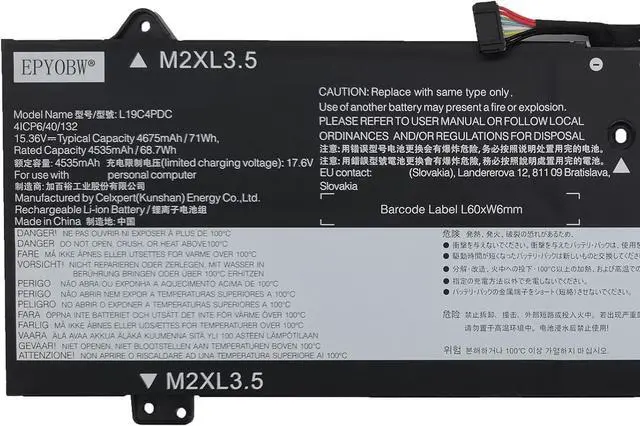 SpecificationsBattery Model: L19C4PDC / Voltage: 15.36V / Capacity: 71Wh 4675mAh 4-Cell / Color: Black / Condition: Brand New.