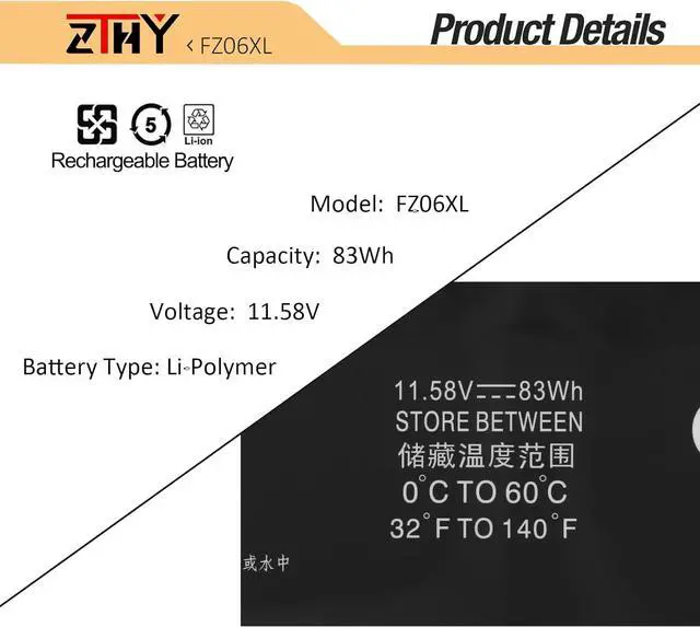 Specifications: Battery type: Li-Polymer. Color: Black. Voltage: 11.58V. Capacity: 83Wh. New from Manufacturer