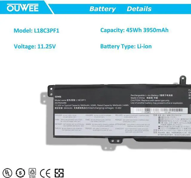 Battery typeLi-ion. Voltage: 11.52V. Capacity: 45Wh 3950mAh .
