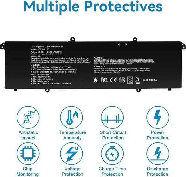 Specifications:Model:C31N2105; Voltage:11.61V;Capacity:70Wh;100% brand new from manufacture. Grade A cells ensure fast charges and low power consumption.