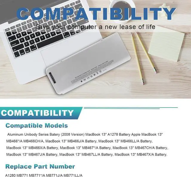 Only fit 2008 Version,it won't fit 2009 2010 2011 version A1278 battery! Replacement For:A1280 A1278 MB771 MB771*/A MB771J/A MB771LL/A