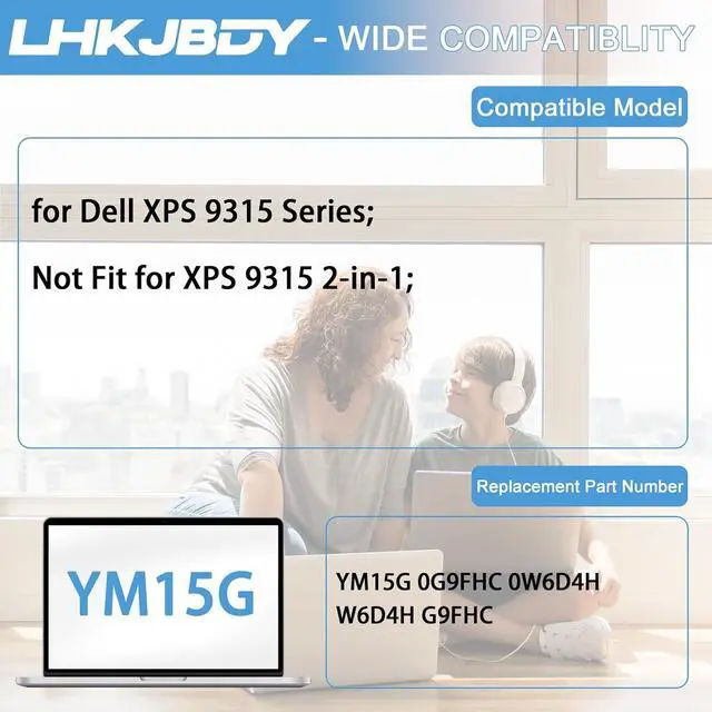 Compatible Laptop Models: YM15G battery for Dell XPS 9315 Series(but not fit for XPS 9315 2-in-1 Series), YM15G battery for Dell XPS 13 9315-P1708LTW 9315-D1705S 9315-C0NNP 9315-WP01KR Series notebook