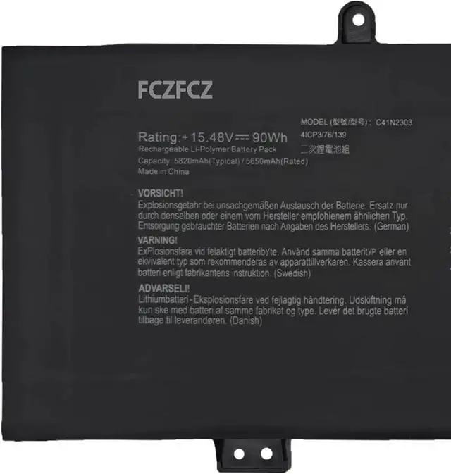 SpecificationsBattery Model: C41N2303 // Voltage:15.48V // Capacity:90Wh 5820mAh // Color:Black // Condition:Brand New.