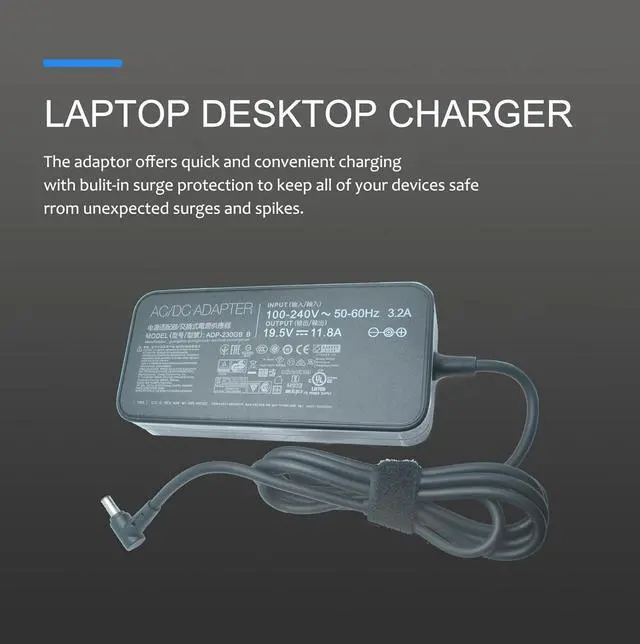 Power specsInput:100-240V / 50-60Hz, Output:19.5V 11.8A 230W, Connector plug: 6.0mm * 3.7mm,with central pin inside(Please check whether the interface is the same as the original charger interface).