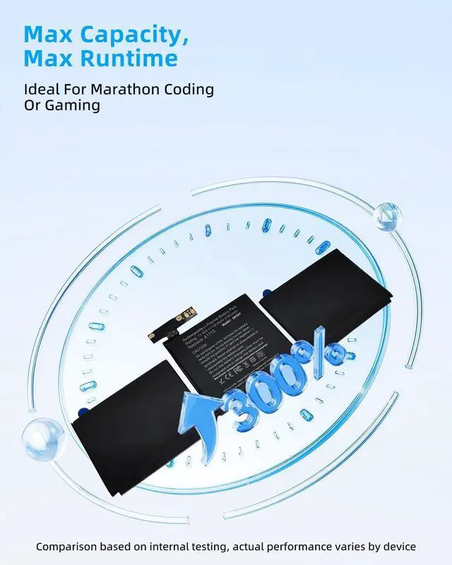 SPECIFICATION : Model Name:A1713 Voltage:11.4V; Capacity: 54.5Wh/4781mAh; Cells: 4 Grade A cells ensure fast charges and low power consumption; Built-in circuit protection ensures both safety and stability. Condition: 100% New; Battery life: More than 1000 cycles.