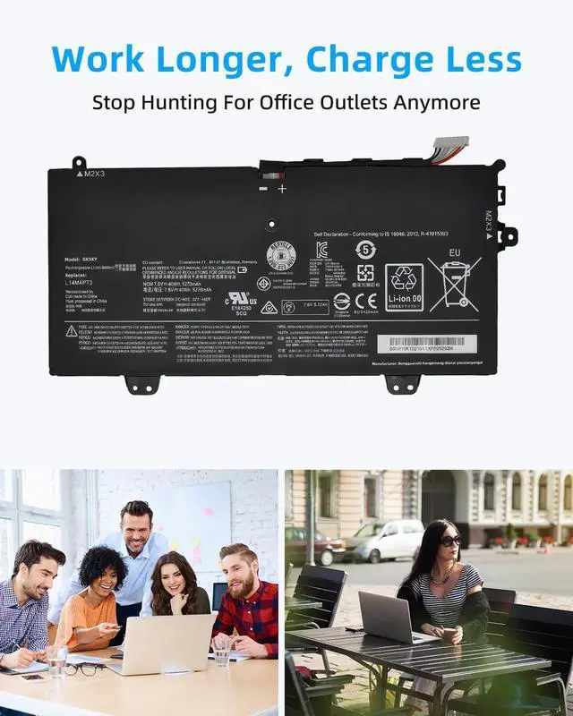 SPECIFICATION : Model Name:L14L4P72 Voltage: 7.6V Capacity: 5265mAh/40Wh Grade A cells ensure fast charges and low power consumption; Built-in circuit protection ensures both safety and stability. Condition: 100% New; Battery life: More than 1000 cycles.