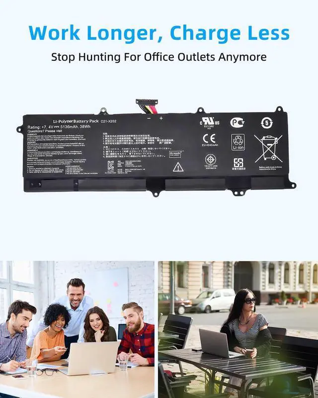 SECURITY AND WARRANTY: JBERY C21-X202 laptop batteries have passed strict intelligent detection, such as short circuit protection, over voltage protection, discharge protection, over current protection, which is very important for batterys use cycle and safety. All batteries are equipped with high quality material to ensure good performance. CE, FCC, RoHS certificated. 90 Days Money Return 18 Months Replacement2 Years Tech Assistance
