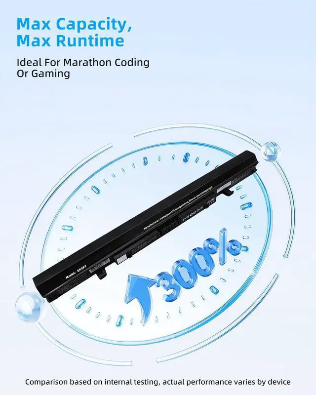 SPECIFICATION : Model Name:PA5076U-1BRS Parameter:14.8V/2200mAh/32.56Wh Grade A cells ensure fast charges and low power consumption; Built-in circuit protection ensures both safety and stability. Condition: 100% New; Battery life: More than 1000 cycles.