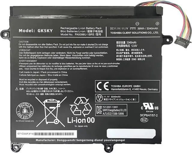 SPECIFICATION : Model Name:PA5098U-1BRS Voltage: 11.1V Capacity: 3340mAh / 39Wh Grade A cells ensure fast charges and low power consumption; Built-in circuit protection ensures both safety and stability. Condition: 100% New; Battery life: More than 1000 cycles.